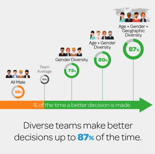 If you don’t measure it, it won’t get better. Right now, measurements are weak or don’t measure actual business performance, especially when it comes to inclusion. When we started doing this research I found the general lack of ROI calculations when it comes to diversity kind of shocking. There’s very little direct measurement of the ROI of diversity, and most importantly the critical role inclusive decision-making plays in unlocking that ROI. Measuring this is critical because unless companies keep track of who is involved in decision-making, our research proves that diverse perspectives are not included, and thus the biggest benefit of a diverse workforce is unrealized. The status quo persists just because we’re not aware of this inclusion gap. Companies think they are succeeding when in fact they are making very little progress. Direct measurement reveals the problem, and motivates change.